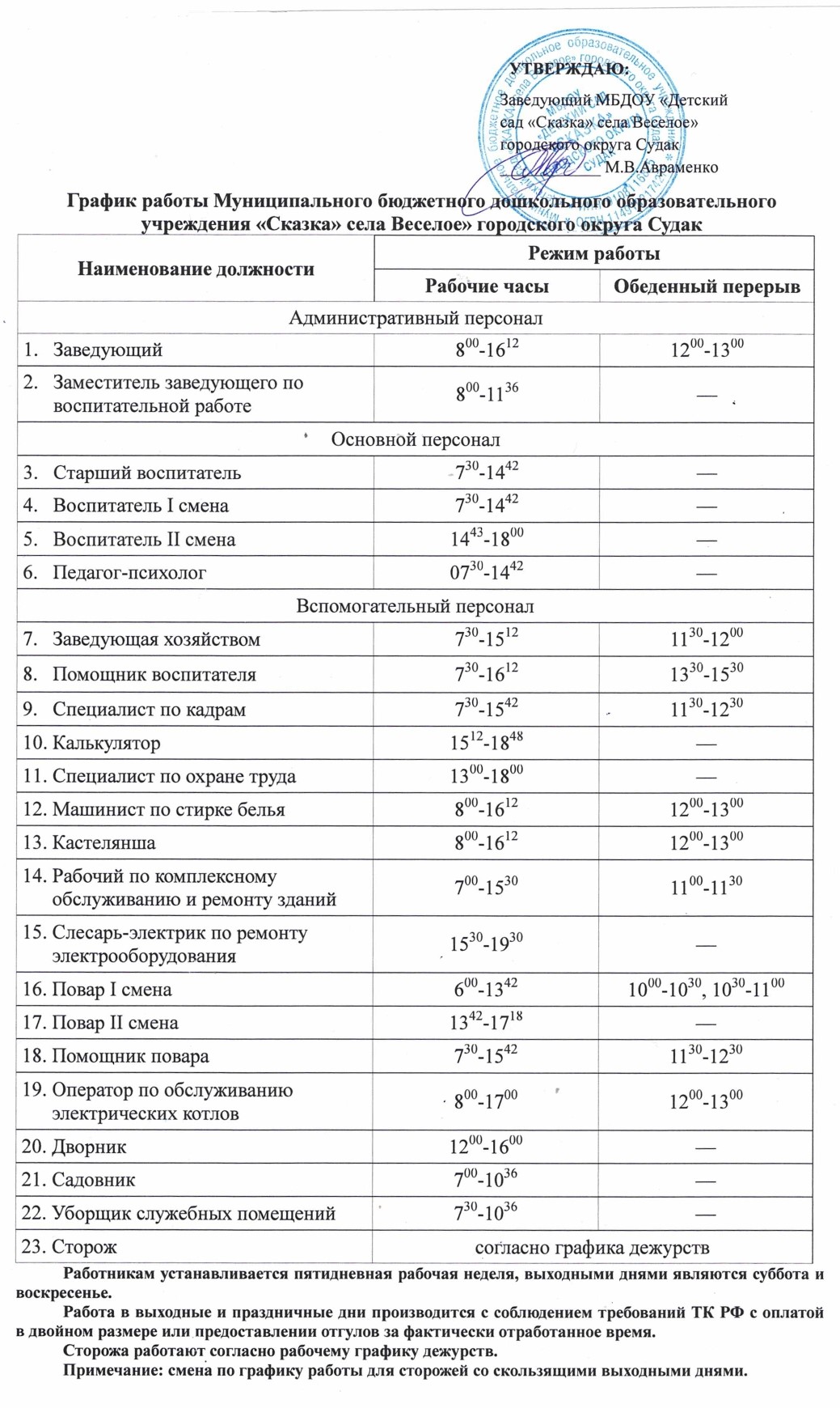 - Выходные дни: суббота, воскресенье, нерабочие праздничные дни, установленные законодательством Российской Федерации, Республики Крым.
